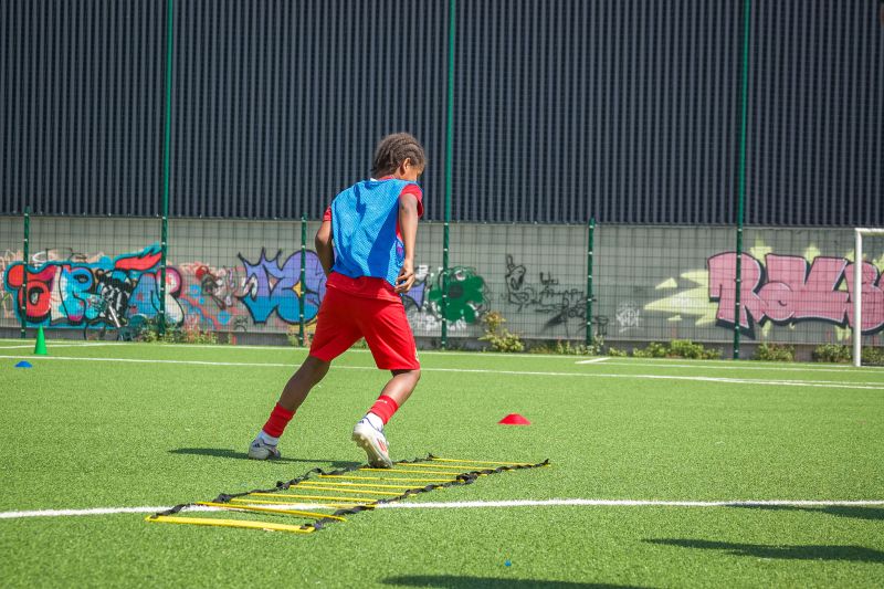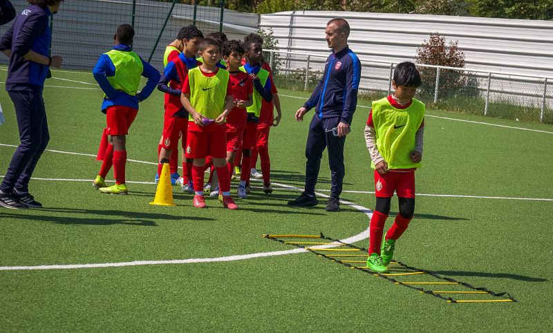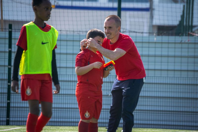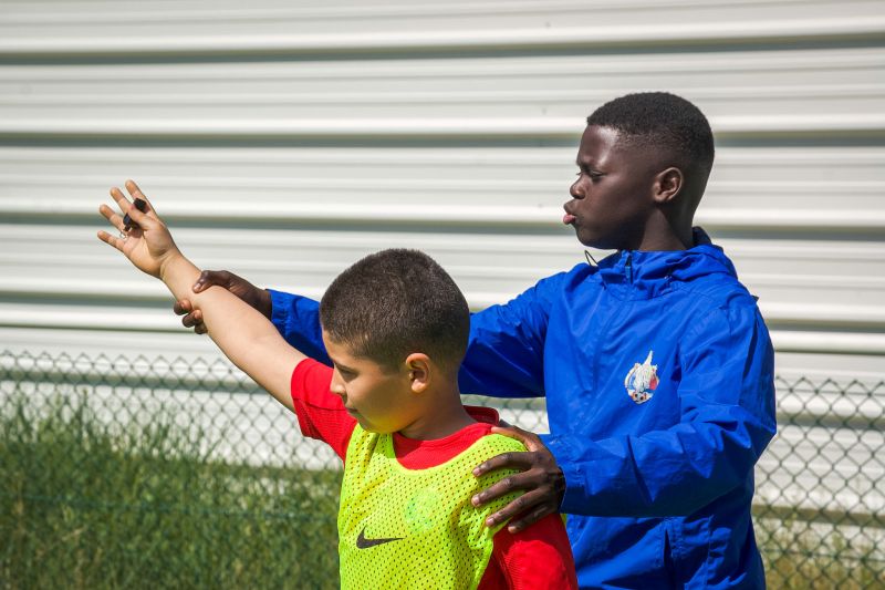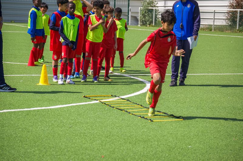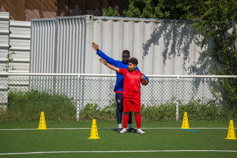 Échauffement (30 min) — Les jeunes ont découvert les gestes des arbitres assistants et centraux à travers des parcours ludiques avant de terminer par un échauffement technique traditionnel.